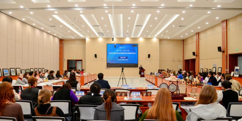 10月22日,学校举办了“留学龙江·遇见非遗——留学生非遗沉浸式体验暨我是非遗讲解员活动”。学校副院长、党委常委张艳霞,省乡村教师教育发展学院(继续教育学院)直属党支部书记王明莉,国际交流合作处处长赵天民,非遗传承人研培计划项目首席专家、文学院教授宋娟参加了本次活动。王明莉主持活动。