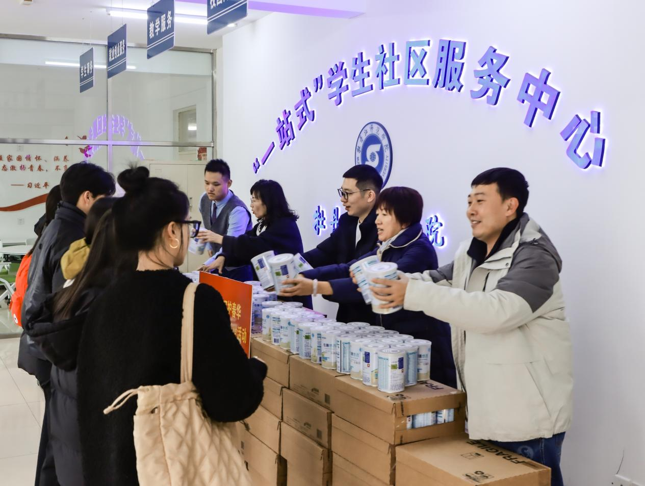 “新善”传温情,营养护春华。为切实关怀我校家庭经济困难学生,助力追梦学子在寒冷的冬日以更饱满的精力投入课堂学习、奔赴青春理想,在中国光华科技基金会的支持下,10月29日,学校在“一站式”学生社区服务中心发放“佳膳加”公益营养品。党委副书记陈海萍、佳木斯市义工联合会理事长韩鹏出席活动。