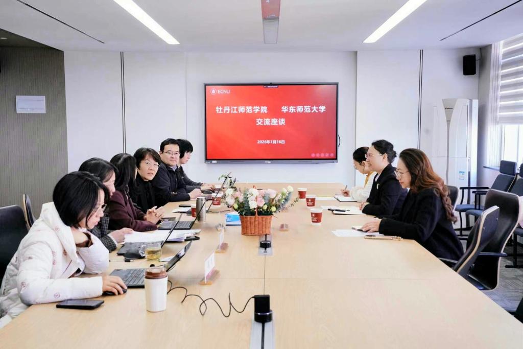 为深入贯彻2026年全国教育工作会议精神,认真落实学校党委关于乡村教育办学特色重点工作部署,学习“双一流”高校关于乡村教师职后培训发展的创新做法和先进经验,1月16日,副院长、党委常委张艳霞带领省乡村教师发展学院(继续教育学院)直属党支部书记王明莉、副院长郑重赴华东师范大学开放教育学院(教师发展学院)开展专题学习调研,华东师范大学开放教育学院(教师发展学院)书记赵健、院长闫寒冰与学院领导班子全体成员热情接待并参加座谈交流。