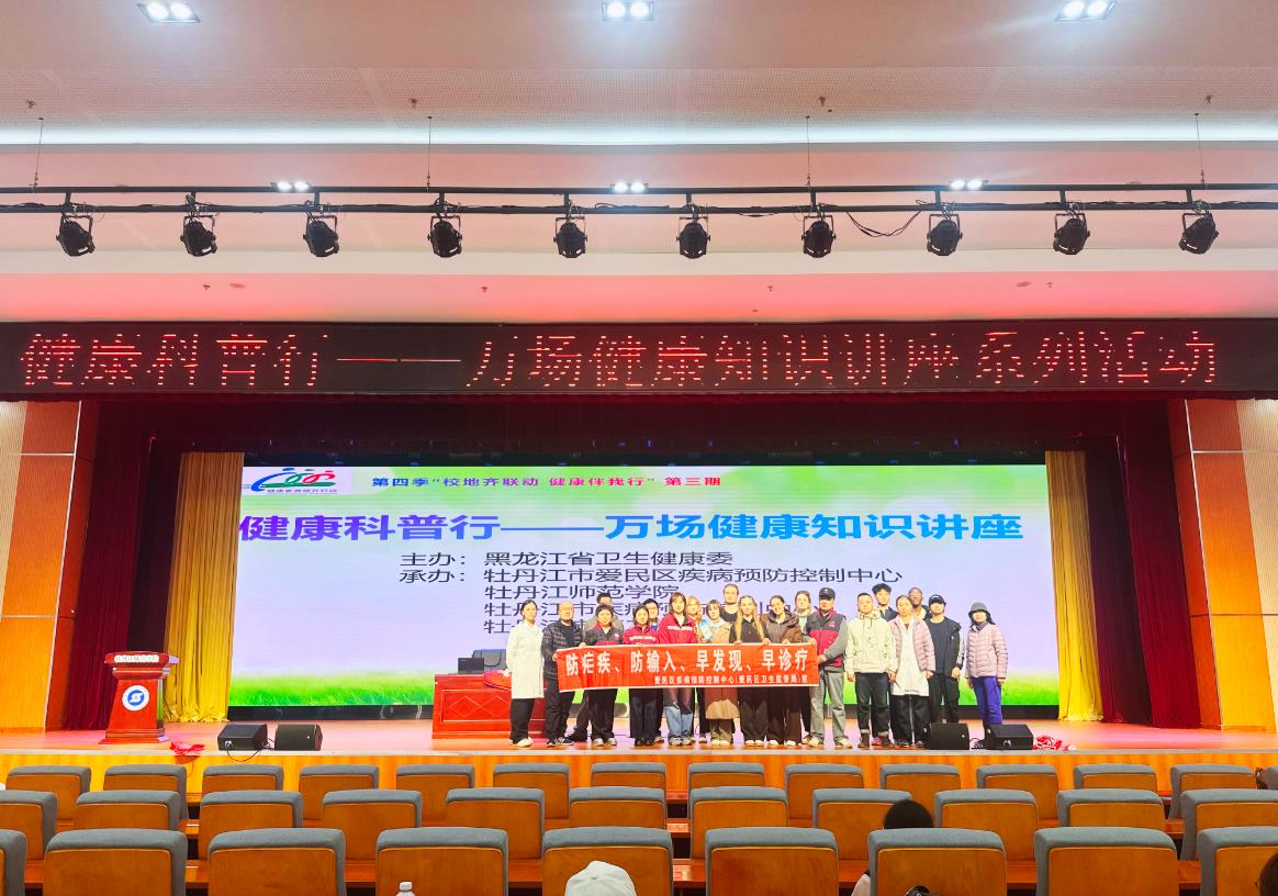 为深入贯彻健康优先发展战略,积极响应国家卫生健康委“全国举办1万场以上健康知识讲座”的号召,切实守护中外学子身心健康,4月22日,由黑龙江省卫生健康委主办,我校联合牡丹江市爱民区疾控中心、牡丹江市疾控中心及市第二人民医院共同承办的“健康科普行”系列活动在实训楼报告厅举行。我校留学生及各二级学院师生代表踊跃参与、共学共进。