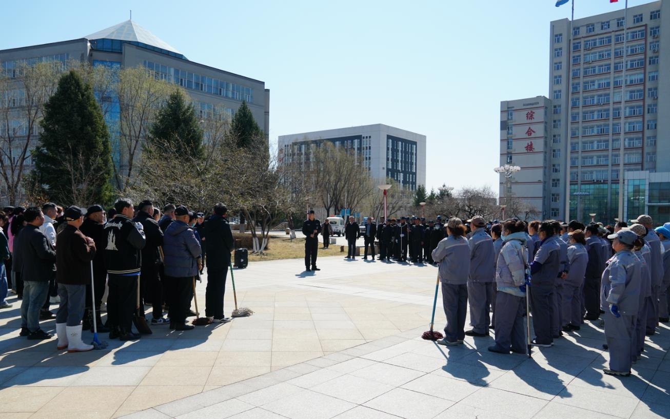 为进一步提升校园反恐防暴应急处置能力,扎实推进“平安校园”建设,筑牢校园安全坚固防线,4月23日上午,学校在时光广场、北门等区域组织开展2026年春季学期反恐处突技能培训演练。牡丹江市公安局爱民分局反恐怖大队大队长李晓鹏、副大队长佟飞,学校保卫处、后勤管理处、离退休工作处等相关单位负责人出席活动。保卫处、学生处公寓管理中心、食堂商超、校医院工作人员及物业公司安保、保洁等共150余人参加演练。