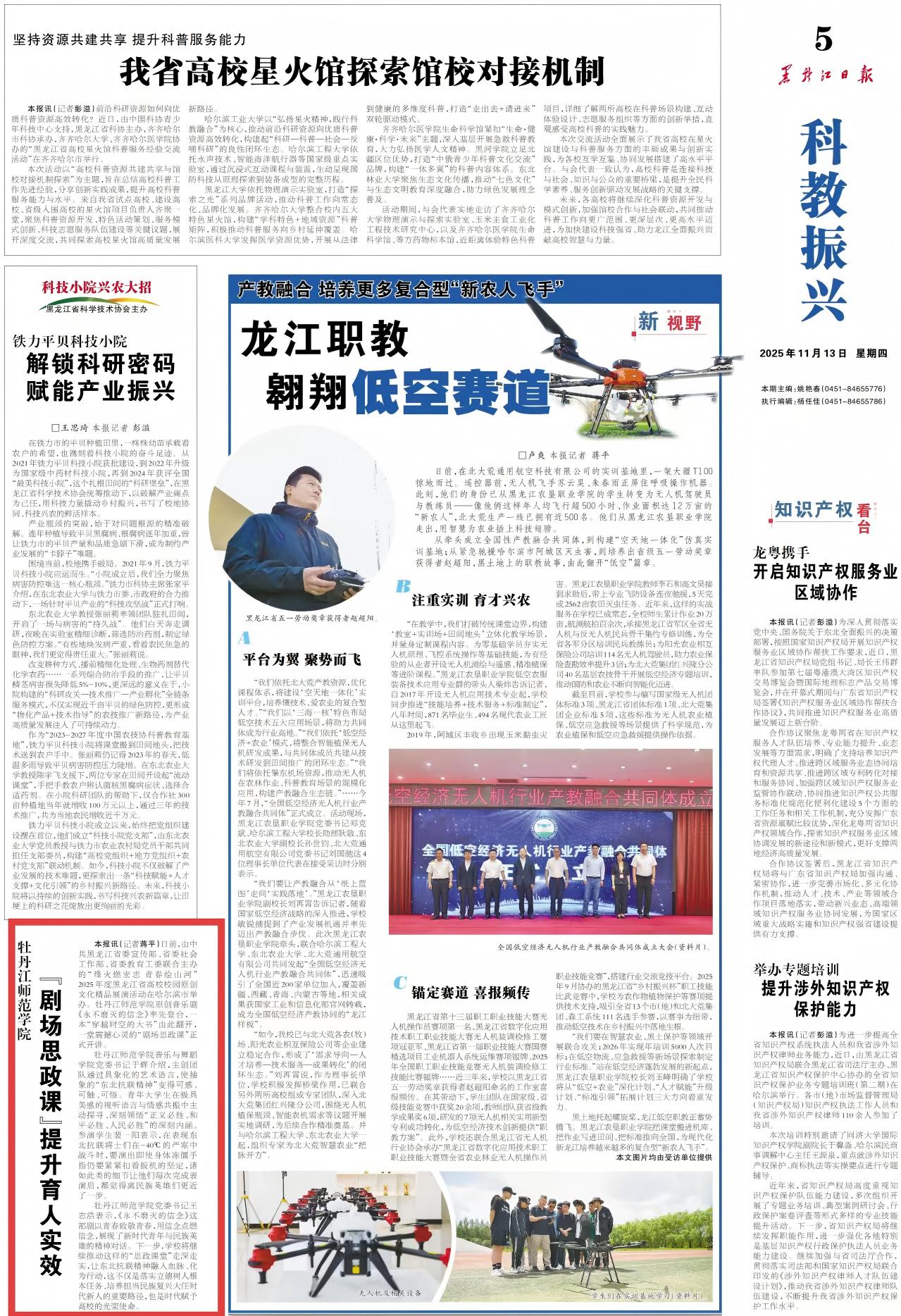 11月13日,黑龙江日报以《牡丹江师范学院:【剧场思政课】提升育人实效》为题,报道我校原创音乐剧《永不磨灭的信念》亮相“烽火燃宏志 青春绘山河”2025年度黑龙江省高校校园原创文化精品展演,带来了一场震撼心灵的“剧场思政课”。