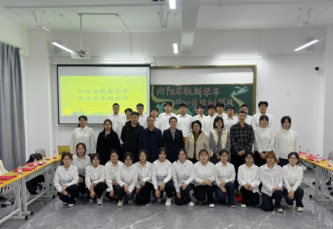 4月8日,副院长张冰深入物理与电子工程学院2025级物理学一班,参加“向阳启航新学年、同心反诈树新风”主题班会,与青年学子面对面交流谈心、共话成长之路。物理与电子工程学院党委书记马少霞、党委副书记高晶辉及班级辅导员陪同参加活动。