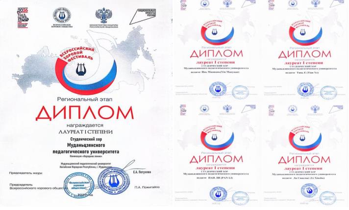 为落实中俄两国元首举办“中俄教育年”共识,深化中俄艺术人文交流,提升师生艺术实践能力,扩大学校在东北亚地区影响力,4月11日—4月12日,音乐与舞蹈学院受邀参加由俄罗斯联邦文化部、全俄合唱协会主办的国家级合唱比赛,并喜获全俄合唱节(区域赛)一等奖;尹茂源、田野、潘栗、李心竹获指导教师一等奖。